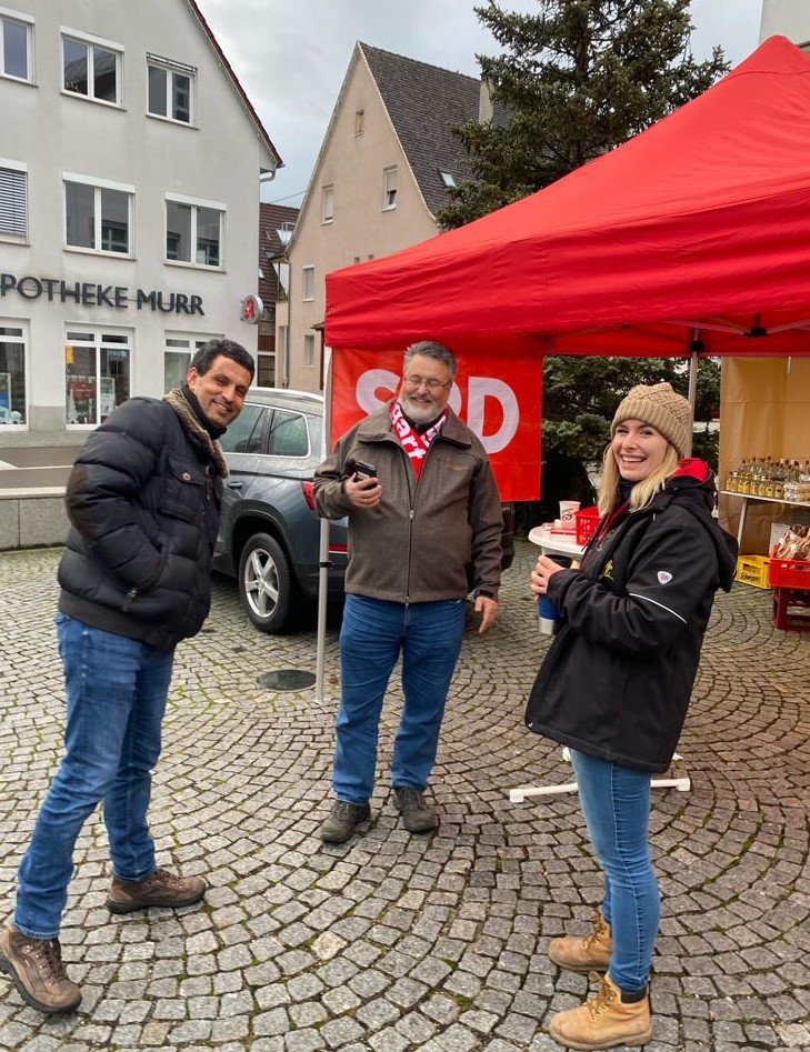 Am vergangenen Samstag war der SPD-Ortsverein wieder mit seinem traditionellen Nikolaus-Infostand auf dem Murrer Dorfplatz vertreten. „Informieren – Diskutieren – Meinung äußern“ war das Motto und zahlreiche Bürgerinnen und Bürger machten Gebrauch davon. Auch die SPD-Gemeinderäte waren am Infostand präsent, nahmen zu vielen Themen Stellung und auch Anregungen auf.